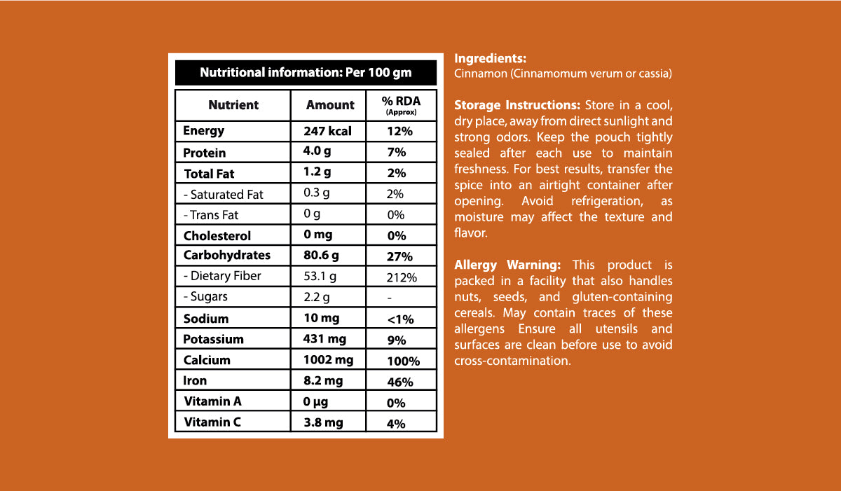 Meet your new kitchen MVP: Authentic Cinnamon Powder. Sweet warmth, earthy aroma, and natural comfort – like a cosy hug in a jar.
